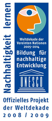 Auszeichnung durch die UNESCO als "Offizielles Projekt der UN-Weltdekade 2011/2012 Bildung für nachhaltige Entwicklung" für die Systematische Verankerung der BNE im Verein --> Urkunde